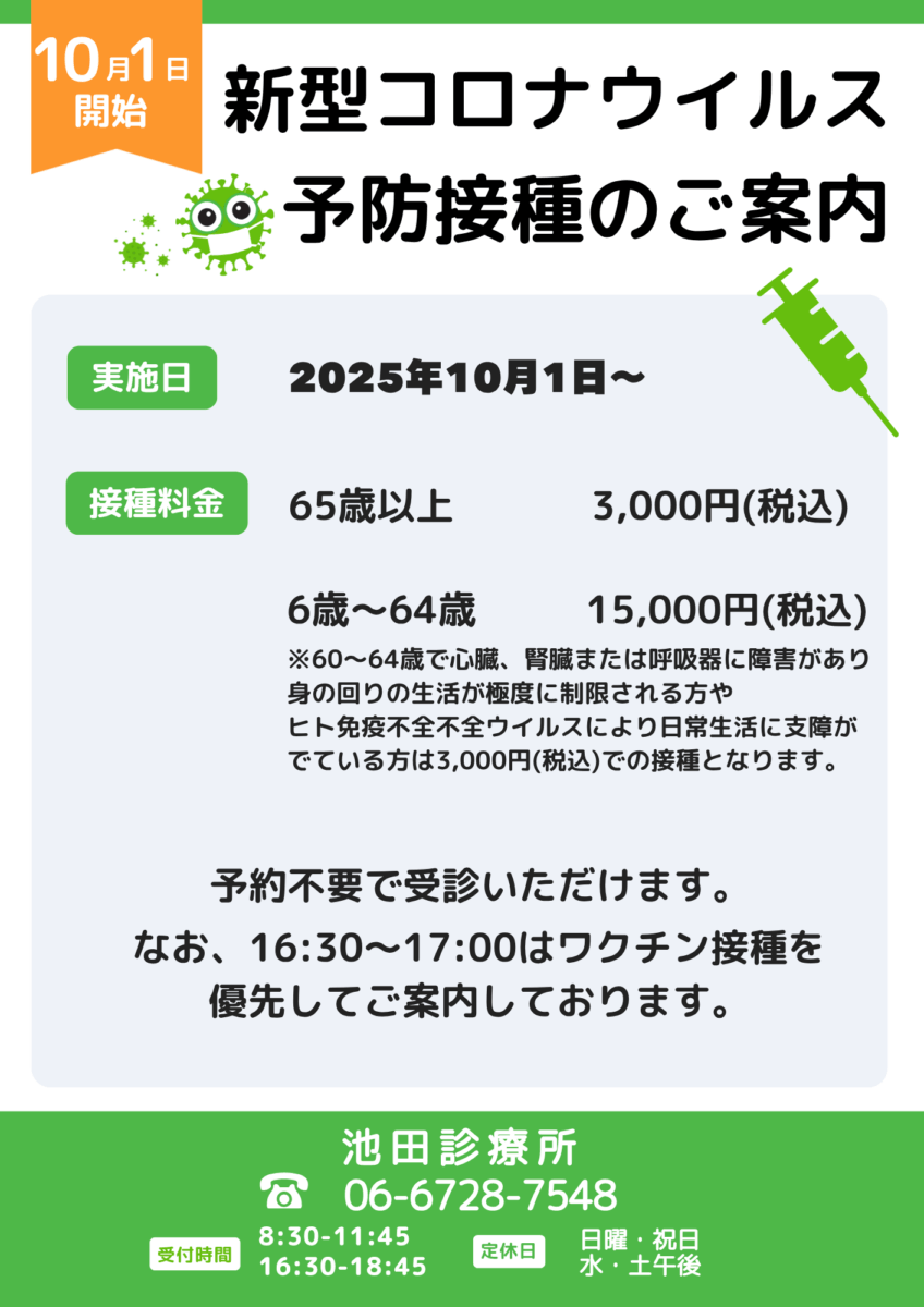 インフルエンザ・新型コロナウイルスワクチン接種のお知らせ